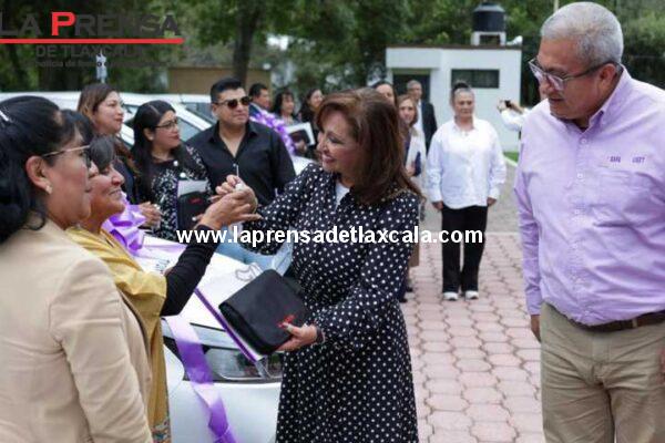 Lorena Cuéllar reconoce al magisterio tlaxcalteca con la entrega de 36 automóviles