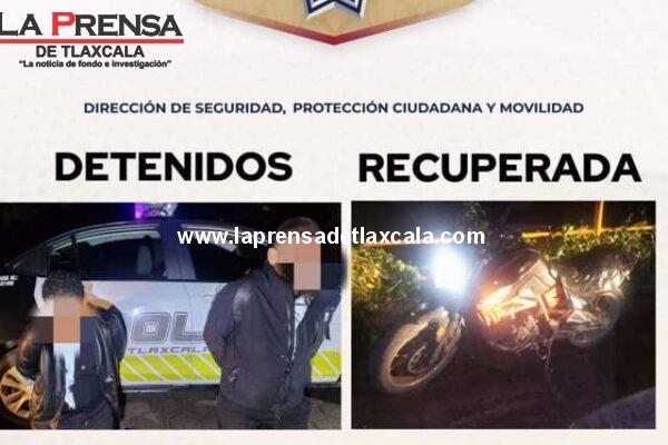 La oportuna intervención de la Policía Municipal de Tlaxcala permitió la recuperación de una motocicleta robada en la colonia El Sabinal, en un operativo que dio como resultado la detención de dos hombres presuntos responsables. De acuerdo con el reporte recibido a través del número de emergencias 911, el propietario denunció que su unidad, marca…
