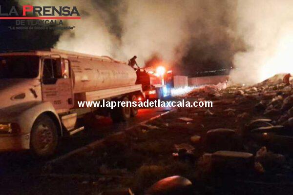 Áreas del Ayuntamiento de Huamantla y bomberos se unen para sofocar fuerte incendio