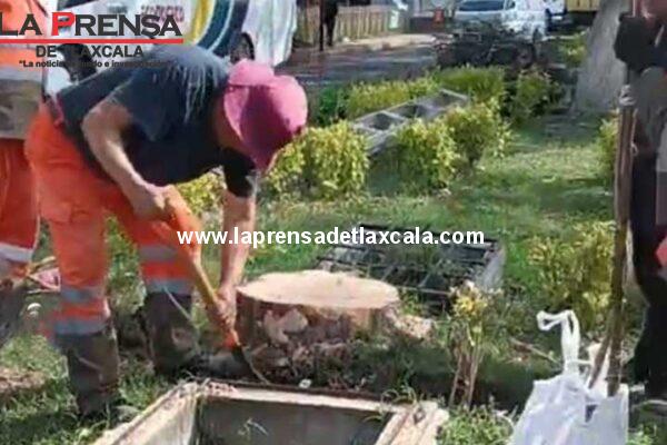 Ayuntamiento de Tlaxcala retira árboles por seguridad y realiza reforestación en Bulevar Mariano Sánchez