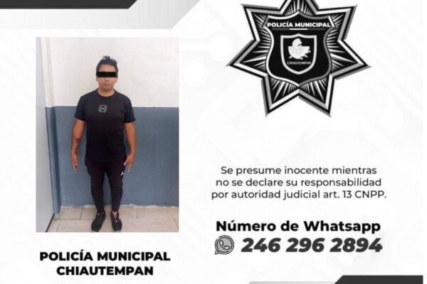 El detenido amagó con el arma hechiza a otro sujeto. Elementos de la Dirección de Seguridad Pública Municipal, Vialidad y Protección Civil de Chiautempan detuvieron a un sujeto por la posesión de un objeto óptimo para agredir en modalidad de arma hechiza. Un reporte ciudadano emitido vía radio transmisor alertó a policías municipales sobre una…