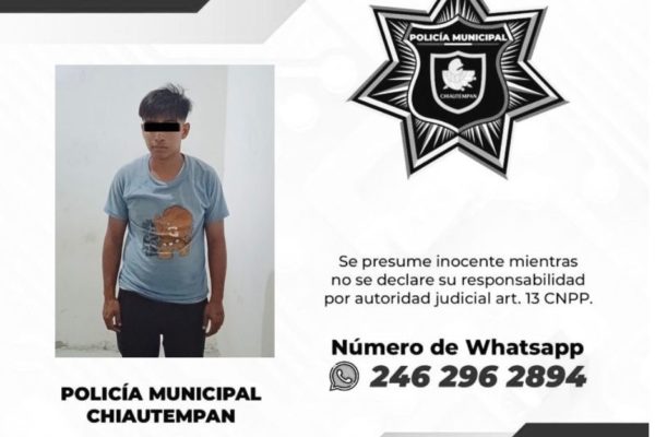 Detienen a presunto acosador en Loma Bonita, Tlaxcala.
