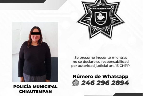Detiene Policía de Chiautempan a femenina por alteración del orden público .