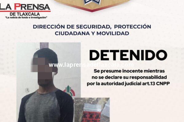 Policía Municipal de Tlaxcala asegura a un hombre en poder de presuntas sustancias prohibidas.