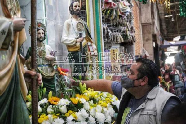 Devotos de toda la región llegan al mercado con flores, arreglos para agradecerle al santo por las peticiones cumplidas. La fe y la devoción por San Judas Tadeo es notable en la comunidad, quienes consideran que su intercesión ha sido fundamental en momentos de necesidad.