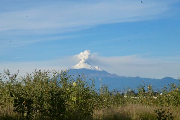 Así luce el volcán Popocatépetl vista desde la colonia las Ánimas,en la capital tlaxcalteca, quien de acuerdo al último monitoreo del Centro Nacional de Prevención de Desastres (Cenapred), el volcán “Don Goyo”, ha presentado desde esta mañana de martes emisones continúas de vapor de agua y gases volcánicos que se dispersan al suroeste. El coloso se mantiene en semáforo de alerta amarillo fase 2.