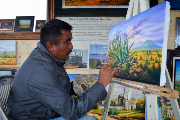Este artista utiliza la técnica de pintura sobre óleo y sus obras van de paisajes tlaxcaltecas, gastronomía tradicional y cuadros que realiza por encargo de sus clientes, creando su propio estilo y siempre en busca de la originalidad, su estudio se encuentra en la laguna de Acuitlapilco donde también reside actualmente.