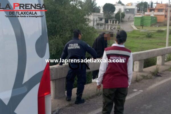 En el puente de San Benito sobre la Apizaco-Tlaxcala evitan policía y PC de Yauhquemehcan que sujeto atente contra su integridad, con diálogo logran disuadirlo y lo ponen a salvo