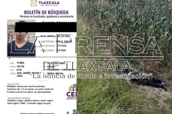Esta tarde, en un terreno de labor de San Andrés Ahuashuatepec, perteneciente al municipio de Tzompantepec, fue localizado un masculino sin vida.