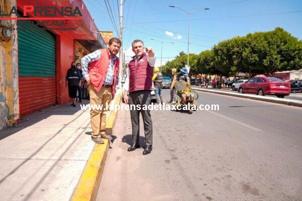 Supervisa alcalde Alfonso Sánchez acciones de menos escritorio y más territorio en el bulevar de la carretera Puebla-Tlaxcala.