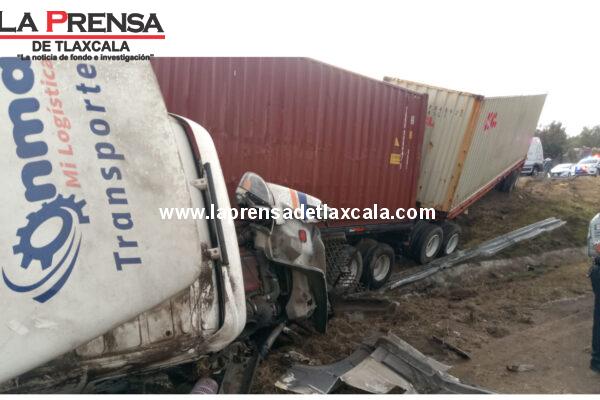 Papá trailero y su hija de 15 años sobreviven a terrorífica volcadura en Libramiento Apizaco-Huamantla.