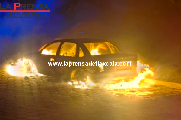 ¡Calcinado en llamas! Hallan cuerpo dentro de vehículo incendiado en Papalotla, Tlaxcala